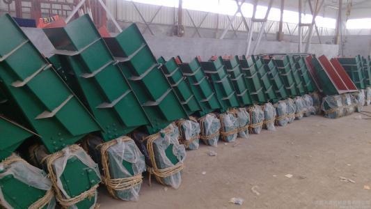 振动给料机通常采用四角金属弹簧悬挂固定。该种悬挂具有制造方便、内摩擦较小、能耗较经济和使用寿命较长等优点,但是也有体积大、容易产生噪声、刚度调节不便、横向刚度小及机体容易出现横向摇晃而引起洒料等缺点。本设计机体入料端釆用橡胶复合弹簧落地而支撑,出料端采用橡胶复合弹簧悬挂固定。橡胶复合弹簧兼具金属弹簧和橡胶弹簧的优点于一身。入料端落地式支撑、出料端悬挂支撑的结构可以解决悬挂固定的缺点,并可增进设备的稳定性。